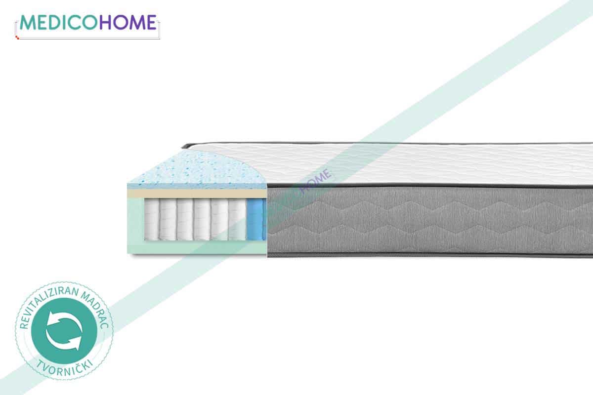 Revitalizirani Medico Home madraci su madraci iz povrata u sklopu Sleep Trial probnog perioda, a na kojima ne postoji niti jedna tvornička pogreška. Ispravni su, pažljivo pregledani i spremni za korištenje. Revitalizirani madraci su potpuno dezinficirani, odnosno očišćeni i njihova navlaka je zamijenjena, to jest potpuno nova i nekorištena.